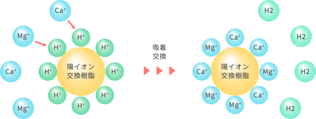 Ion exchange is a process in which specific ions contained in water are replaced with other ions contained in ion exchange resin.