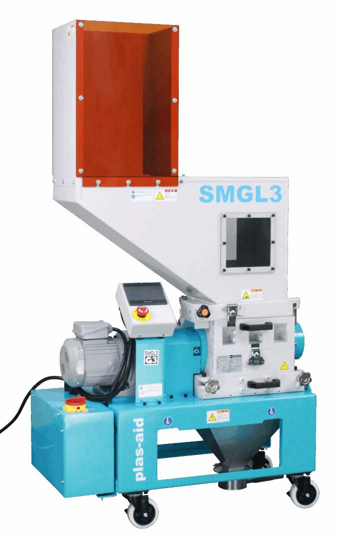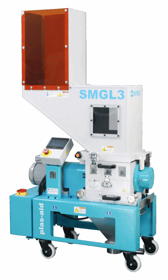 粉砕機を成形機に沿わせたレイアウトであっても、粉砕機全体の清掃を行うことが可能です。従来は粉砕機を手前に移動しなければ清掃できませんでしたが、SMGL3は一方向から清掃部が全て開く構造のため、日々のメンテナンスが行いやすくなっています。