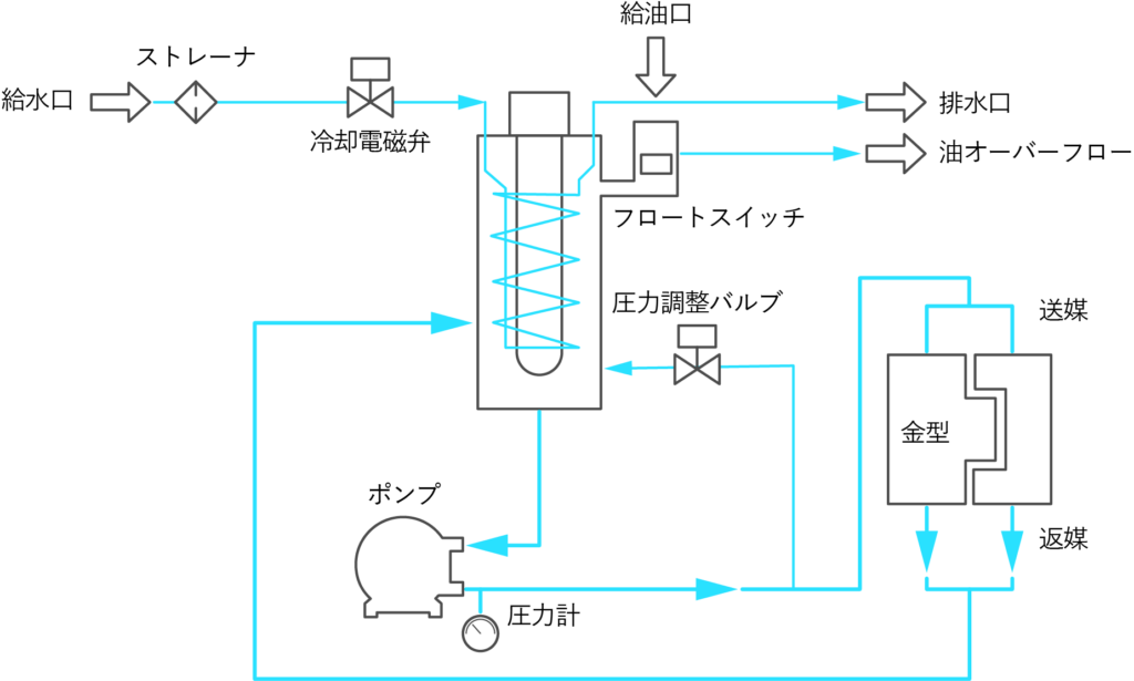 高温域での温度管理に対応した油専用の温度調節機です。 ヒーター制御にSSRを採用し、安定した温度制御と高い安全性を兼ね備えています。