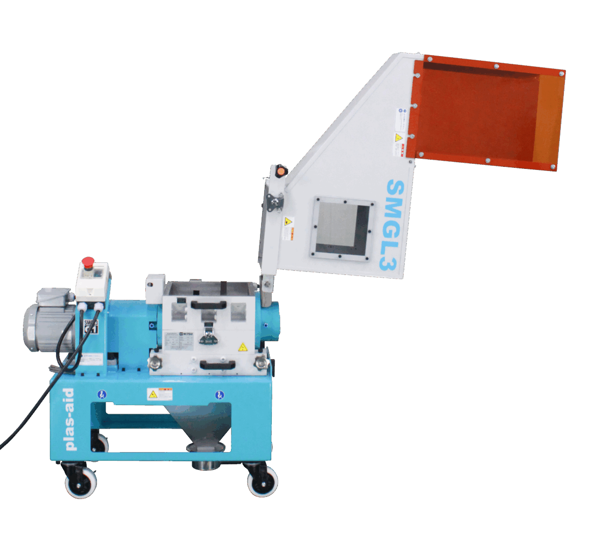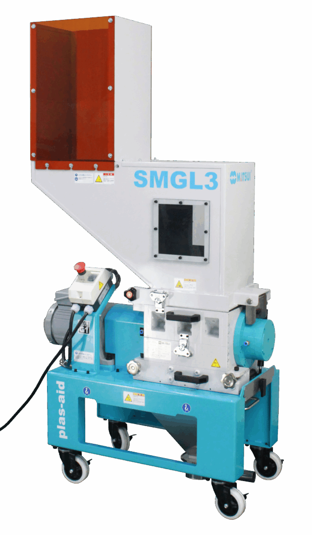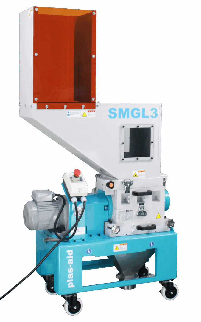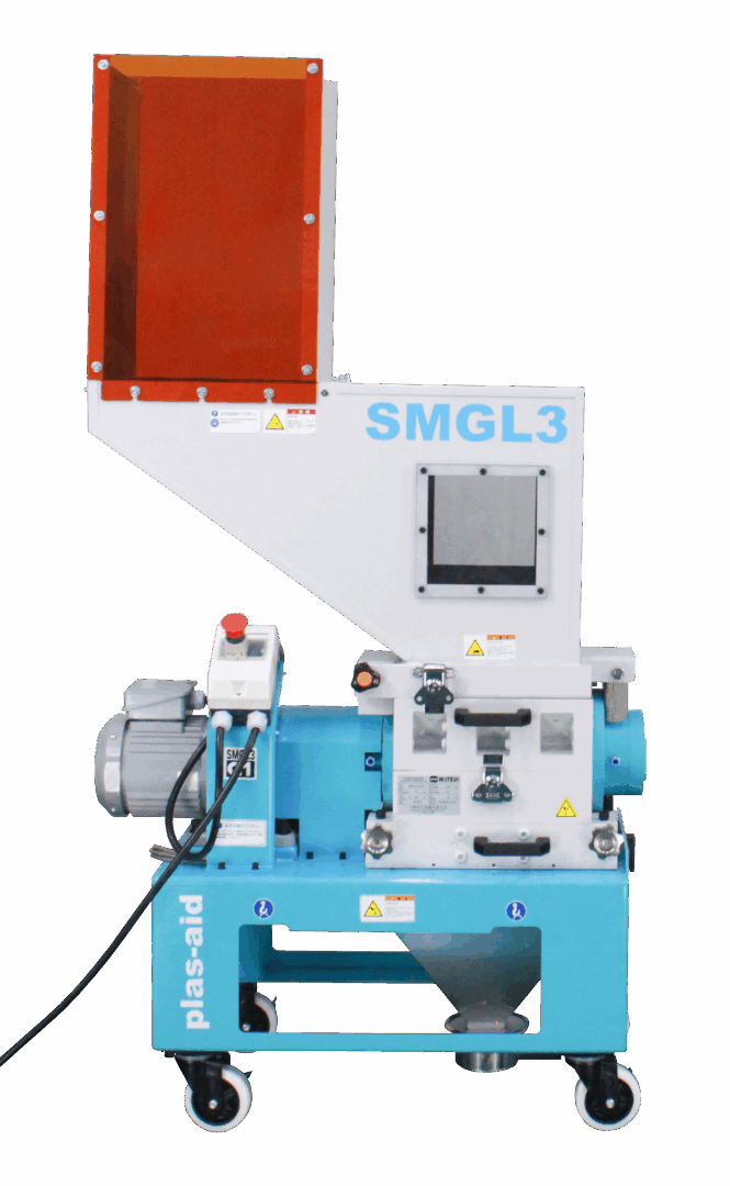 粉砕機を成形機に沿わせたレイアウトであっても、粉砕機全体の清掃を行うことが可能です。従来は粉砕機を手前に移動しなければ清掃できませんでしたが、SMGL3は一方向から清掃部が全て開く構造のため、日々のメンテナンスが行いやすくなっています。